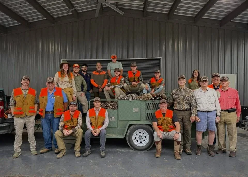 Pictured: Addie Lloyd along with other guides and group of hunters after a successful morning hunt at Jacobs Plantation.